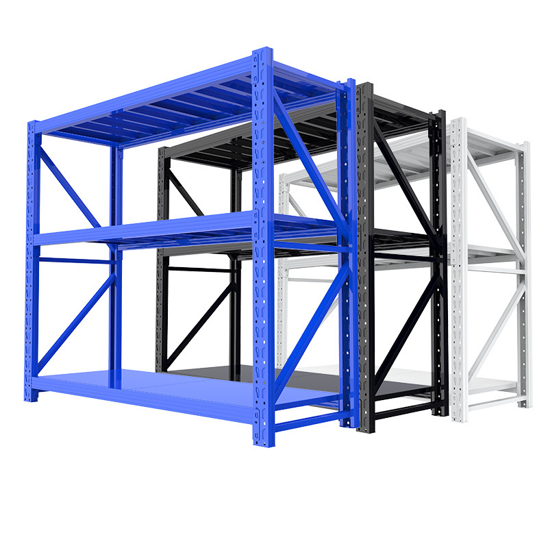 中型货架:适用于存放中等重量的物品,如电子产品、五金工具等。中型货架的结构比轻型货架更为稳固,承重能力也更强。